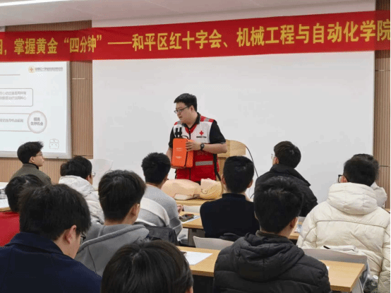 机械工程取从动化学院特邀和平区红十字会专业培训人员,通过理论取实践慎密连系的培训模式!